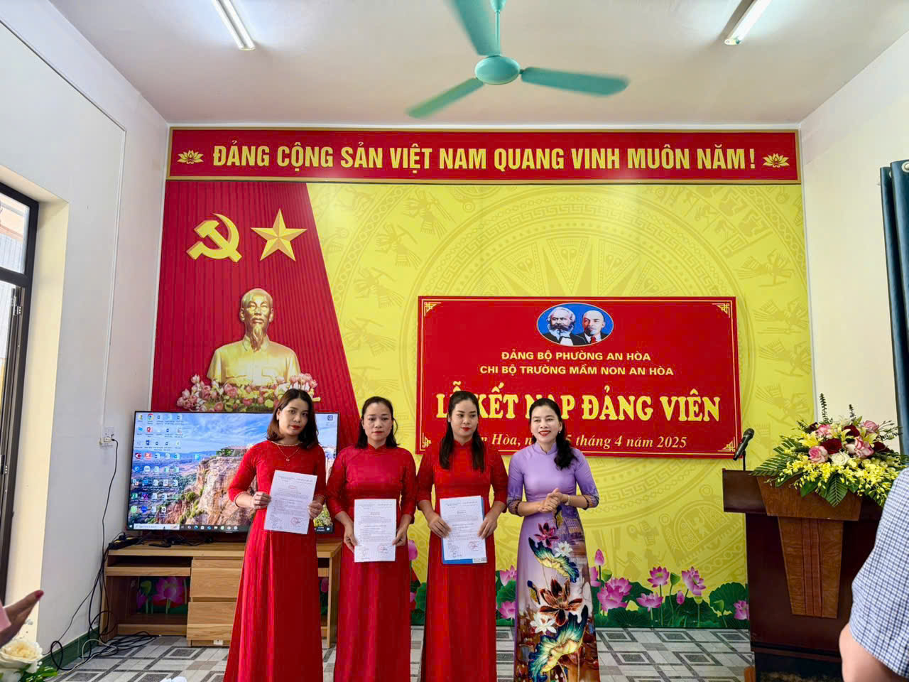 Ngày 15 tháng 4 năm 2025, Chi bộ Trường Mầm non An Hoà long trọng tổ chức Lễ kết nạp Đảng cho ba quần chúng ưu tú: