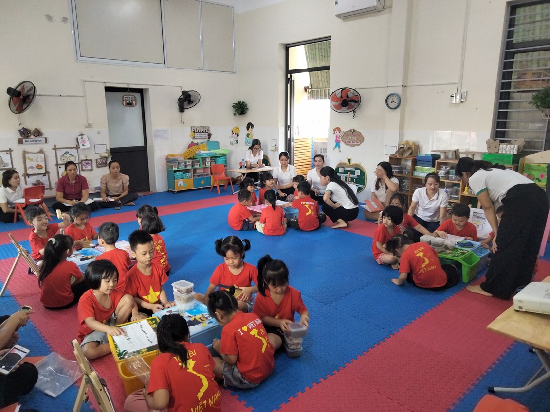 Để nắm bắt và hiểu sâu hơn về ứng dụng phương pháp STEAM, buổi sáng ngày hôm nay (ngày 01/11/2023) trường mầm non An Hòa đã tổ chức hội thảo chuyên đề "Ứng dụng phương pháp giáo dục STEAM trong tổ chức các hoạt động cho trẻ" tại 2 lớp mẫu giáo 5 tuổi A1 và 4 tuổi B3. Dưới đây là một sô hình ảnh của buổi hội thảo: