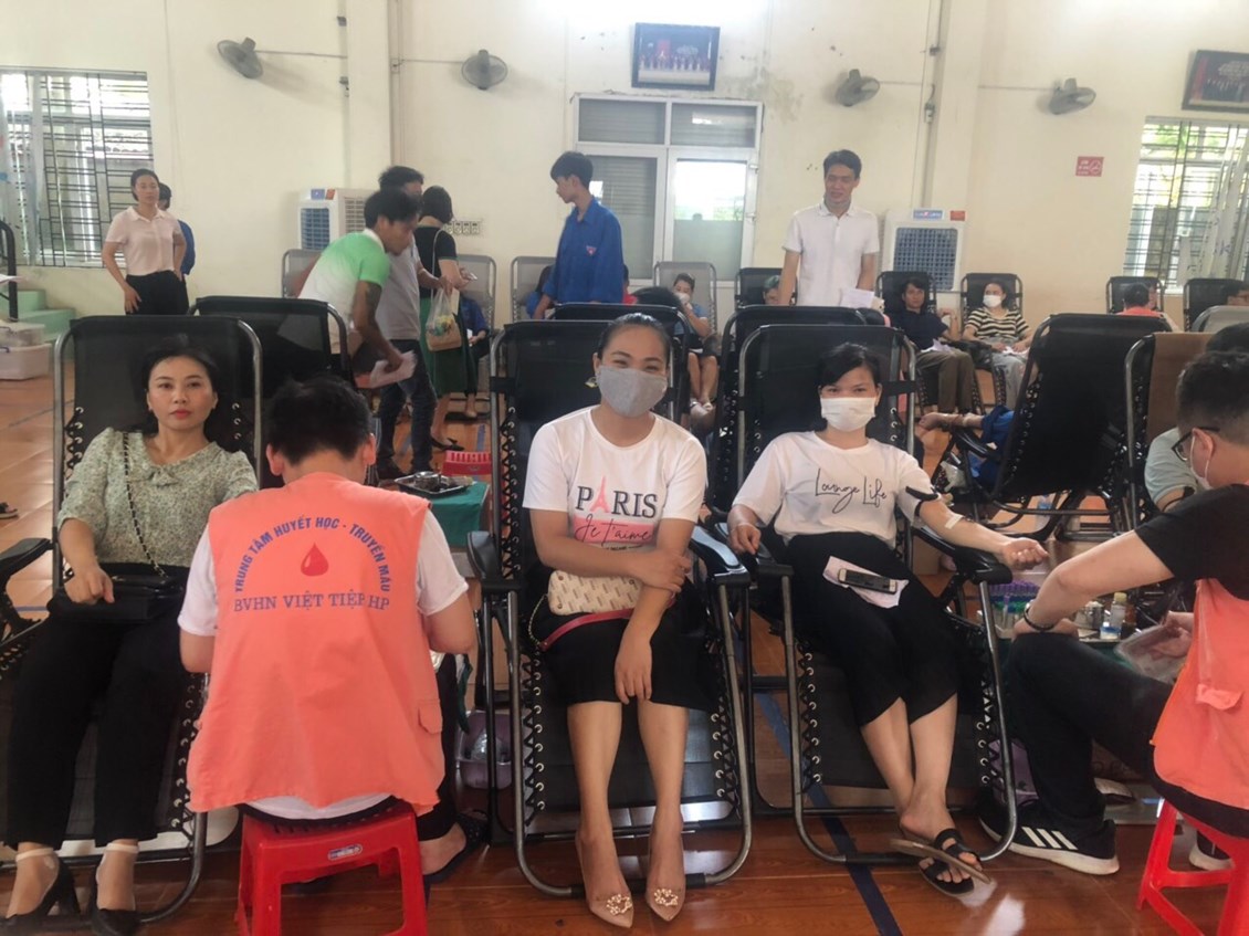 Cán bộ giáo viên trường Mầm non An Hòa tại ngày hội hiến máu tình nguyện
