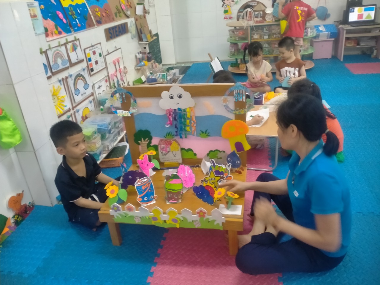 Dưới đây là một số hình ảnh minh họa hoạt động vui chơi trong góc của các bé lớp 5 tuổi A5: