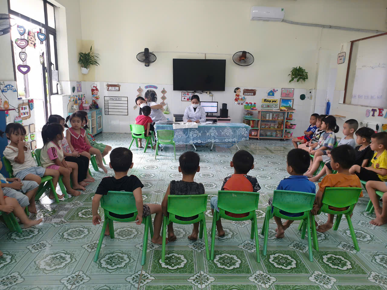 Trong các hoạt động của nhà trường, công tác chăm sóc sức khoẻ cho trẻ là một việc làm luôn được nhà trường đặc biệt quan tâm. Từ nhiều năm nay, việc tổ chức khám sức khoẻ định kỳ cho trẻ đã được nhà trường duy trì thành nề nếp thực hiện thường xuyên theo kế hoạch 2 lần trong năm học.