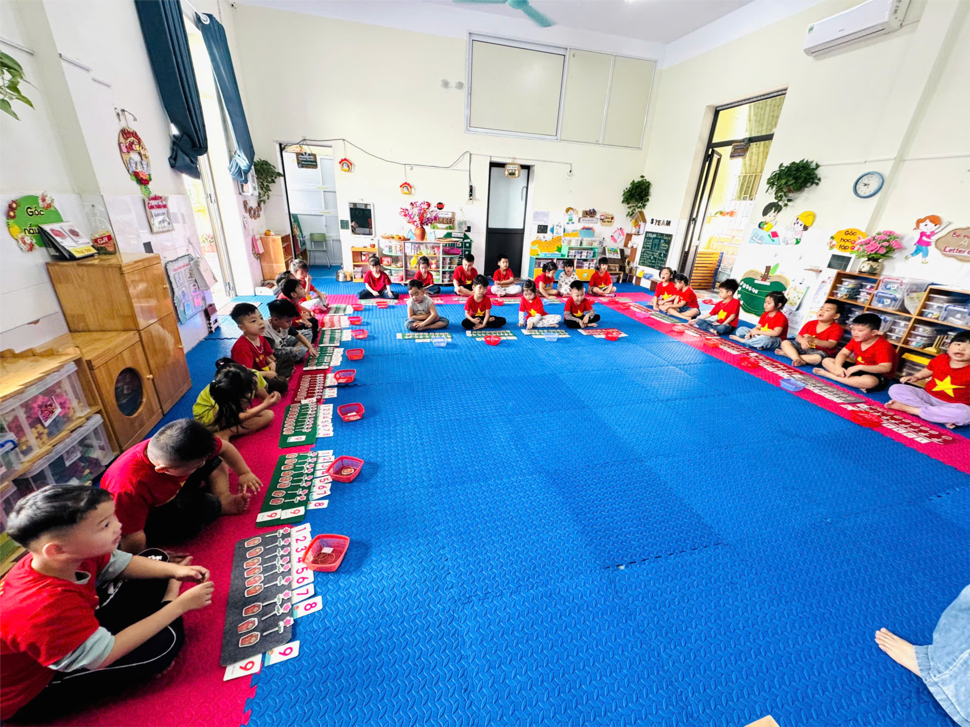 Tại lớp 5 tuổi A1 trường Mầm non An Hòa, hoạt động làm quen với toán qua bài học "Nhận biết số lượng trong phạm vi 9 và đếm đến 9" đang diễn ra đầy sôi nổi và hứng khởi. Đây là nội dung quan trọng giúp các con củng cố tư duy logic và xây dựng nền tảng kiến thức vững chắc trước khi bước vào lớp 1. Qua bàn tay khéo léo của các cô, những con số khô khan đã trở nên sinh động thông qua các đồ dùng học tập đa dạng và màu sắc. Các bé không chỉ đếm thành thạo các nhóm đối tượng trong phạm vi 9 mà còn nhận biết chính xác các chữ số và ý nghĩa của chúng. Hoạt động này còn giúp trẻ rèn luyện kỹ năng quan sát, sự tập trung và khả năng phản xạ nhanh nhẹn thông qua các trò chơi ôn luyện. Nhìn những ánh mắt say mê và đôi tay nhỏ xíu nhanh thoăn thoắt xếp đồ dùng, các cô càng thêm tự hào về sự tiến bộ của học trò mình. Nhà trường rất mong quý phụ huynh hãy cùng con ôn tập tại nhà bằng cách đếm các đồ vật gần gũi để giúp bé ghi nhớ sâu sắc hơn. Sự đồng hành của gia đình và nhà trường sẽ là bệ phóng giúp các bạn nhỏ lớp 5 tuổi A1 tự tin vững.