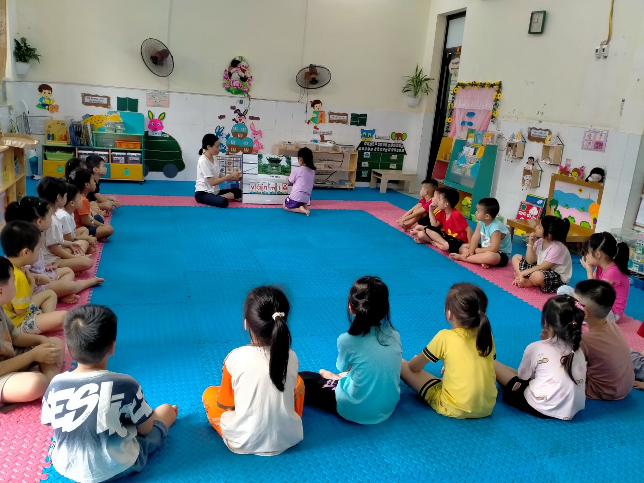 Dưới đây là một số hình ảnh trong hoạt động làm quen với chữ cái "v, r" tại lớp mẫu giáo lớn 5 tuổi A5 trường mầm non An Hòa: