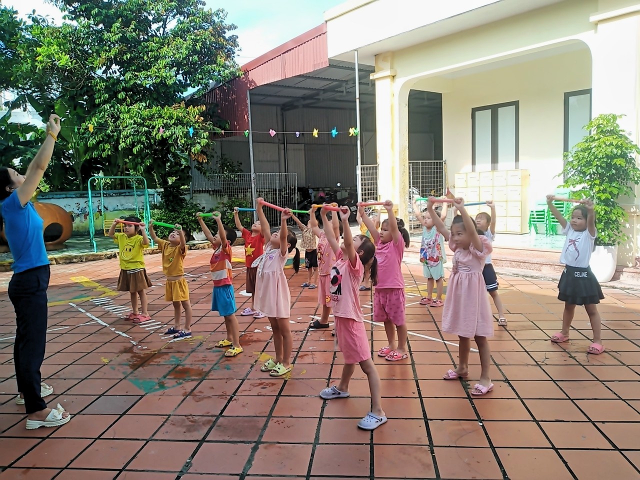 Thể dục sáng là một hoạt động vô cùng bổ ích, khi đến trường các con được tập thể dục sáng cùng các bạn. Những động tác vận động thể dục vui nhộn sẽ khiến cơ thể các bé dồi dào năng lượng để cơ thể hoạt động tốt cho một ngày dài, tinh thần tỉnh táo và tự tin bắt đầu một ngày mới.