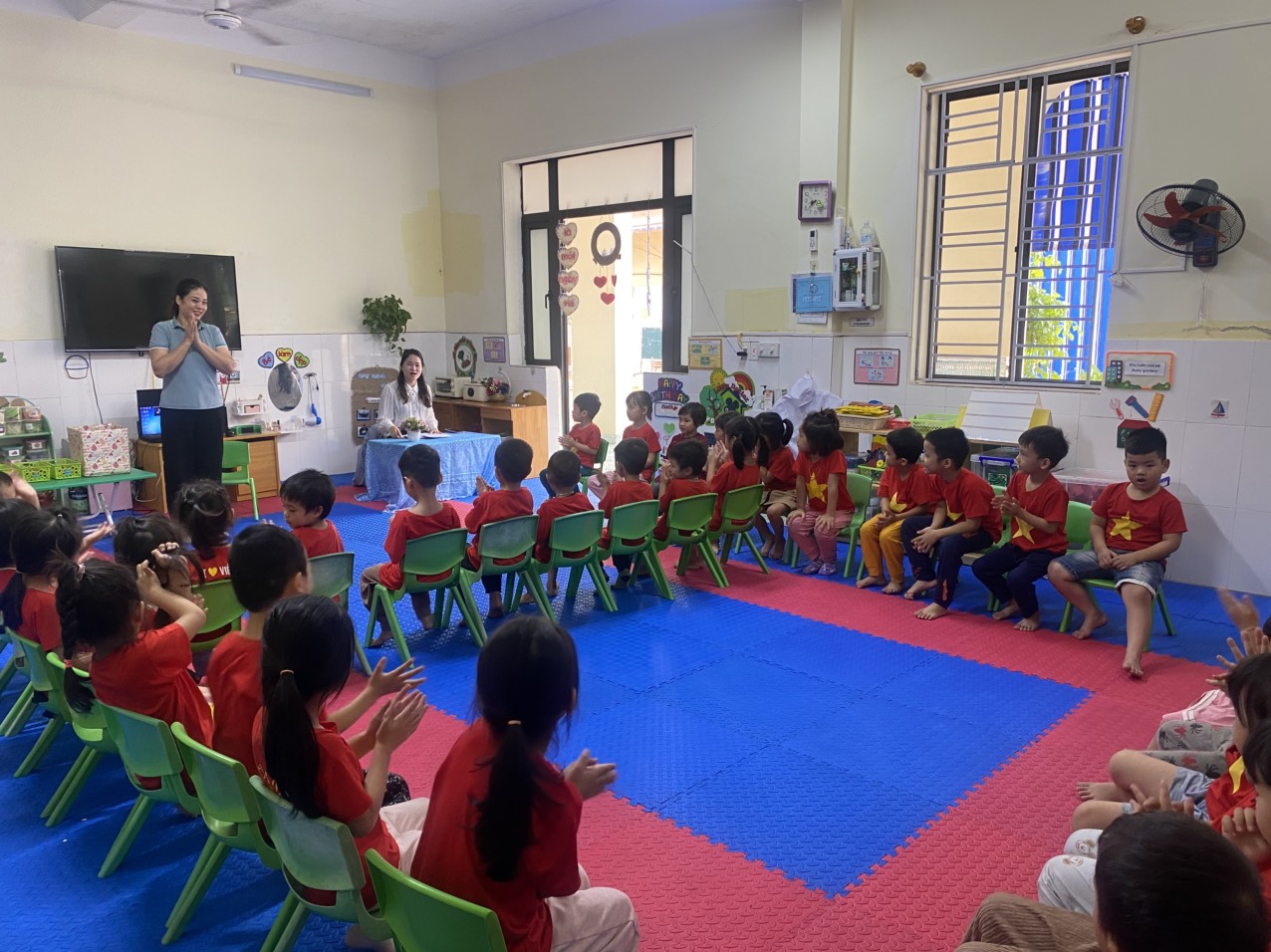 Hoạt động tiếp theo trẻ sẽ được làm quen với các nhịp điệu cơ bản và học cách vỗ tay theo những nhịp điệu này một cách từ tốn, chậm rãi và sau khi làm quen với từng nhịp, trẻ sẽ thực hành vỗ tay theo nhóm, đồng bộ với nhau để tạo nên sự hòa hợp. Sau khi trẻ đã làm quen với các nhịp cơ bản, giáo viên sẽ hướng dẫn các bài tập phức tạp hơn như sử dụng các dụng cụ âm nhạc, giúp trẻ phát triển kỹ năng âm nhạc toàn diện hơn. trẻ sẽ học cách cảm nhận và vỗ tay theo nhịp điệu chậm, giúp tăng khả năng phân biệt các đơn vị thời gian trong âm nhạc.